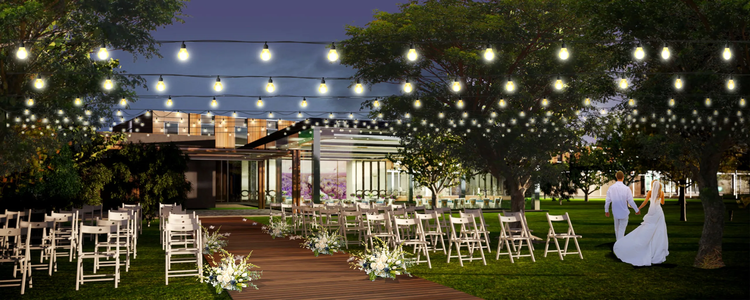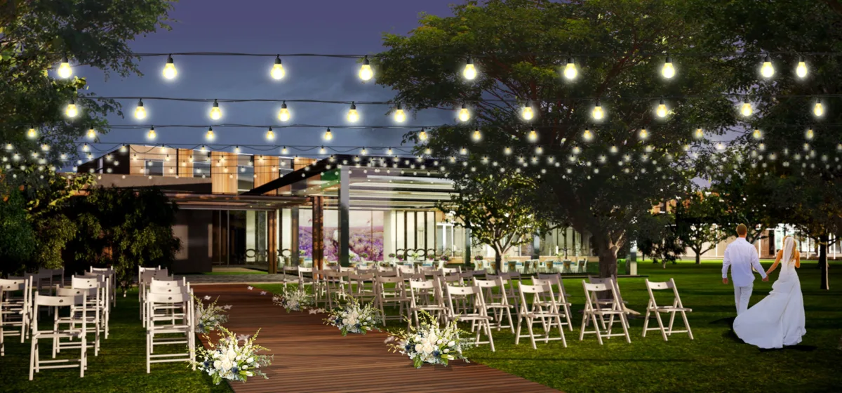 - професійний багатофункціональний зал із супутньою інфраструктурою, в тому числі з власною ділянкою в парковій зоні, передбаченою для проведення весільних церемоній і корпоративних подій;