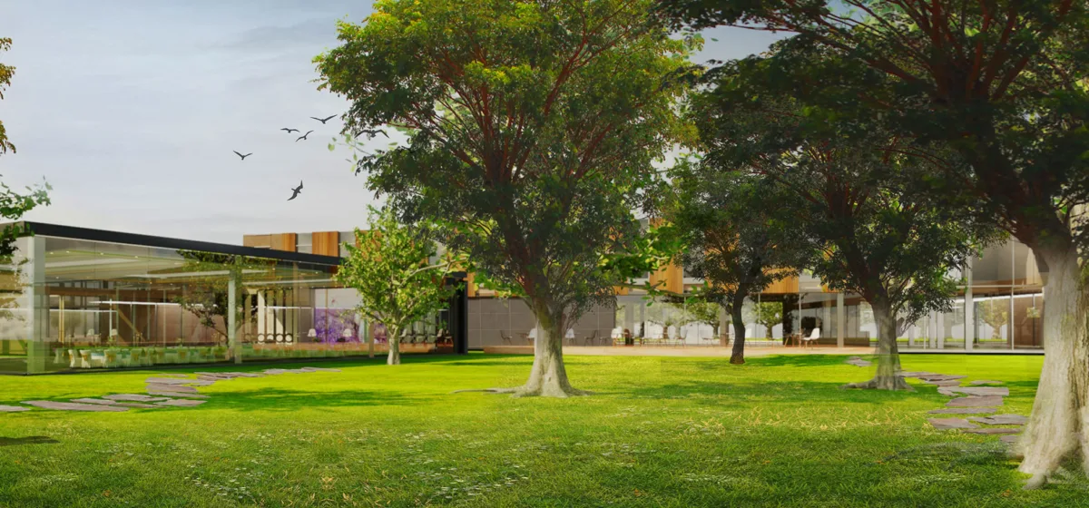 В результаті, згідно з проєктом, передбачається повна реконцепція ділянки зі знесенням усіх існуючих на ній будівель та реалізація багатофункціонального заміського комплексу (сіті резорт готелю) з розвиненою інфраструктурою. Генеральний план ділянки передбачає благоустрій території площею 27 031 кв. м і зведення на ній 1-2-поверхової будівлі з головним корпусом і декількома секціями, об’єднаними в єдине ціле теплими переходами зі скляними стінами. У цьому будівельному об’ємі розмістяться: готель на 71 номер, SPA-комплекс площею понад 800 кв. м з крито-відкритим дорослим і відкритим дитячим басейнами, багатофункціональний (конференц-, бенкетний) зал (більше 250 кв. м) зі своєю ділянкою в парковій зоні, ресторан з літньою терасою (до 180 місць), службові та технічні приміщення та ін. Територія комплексу передбачає розробку ландшафтного дизайну зі збереженням зелених насаджень і благоустроєм парку із стежками для прогулянок, кінотеатром під відкритим небом, релакс-зонами, Instagram-інсталяціями, дитячим майданчиком та ін.