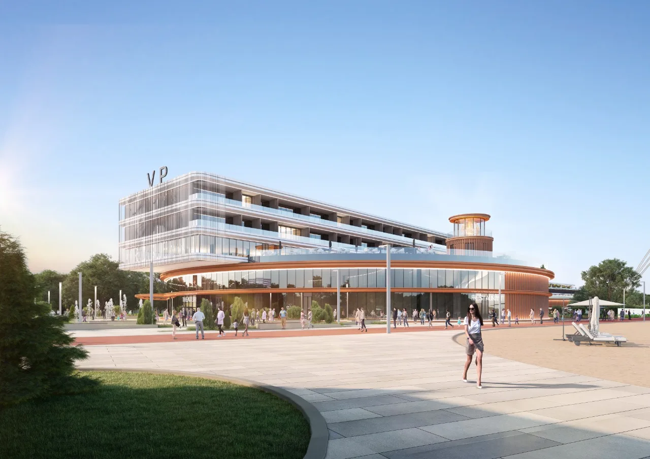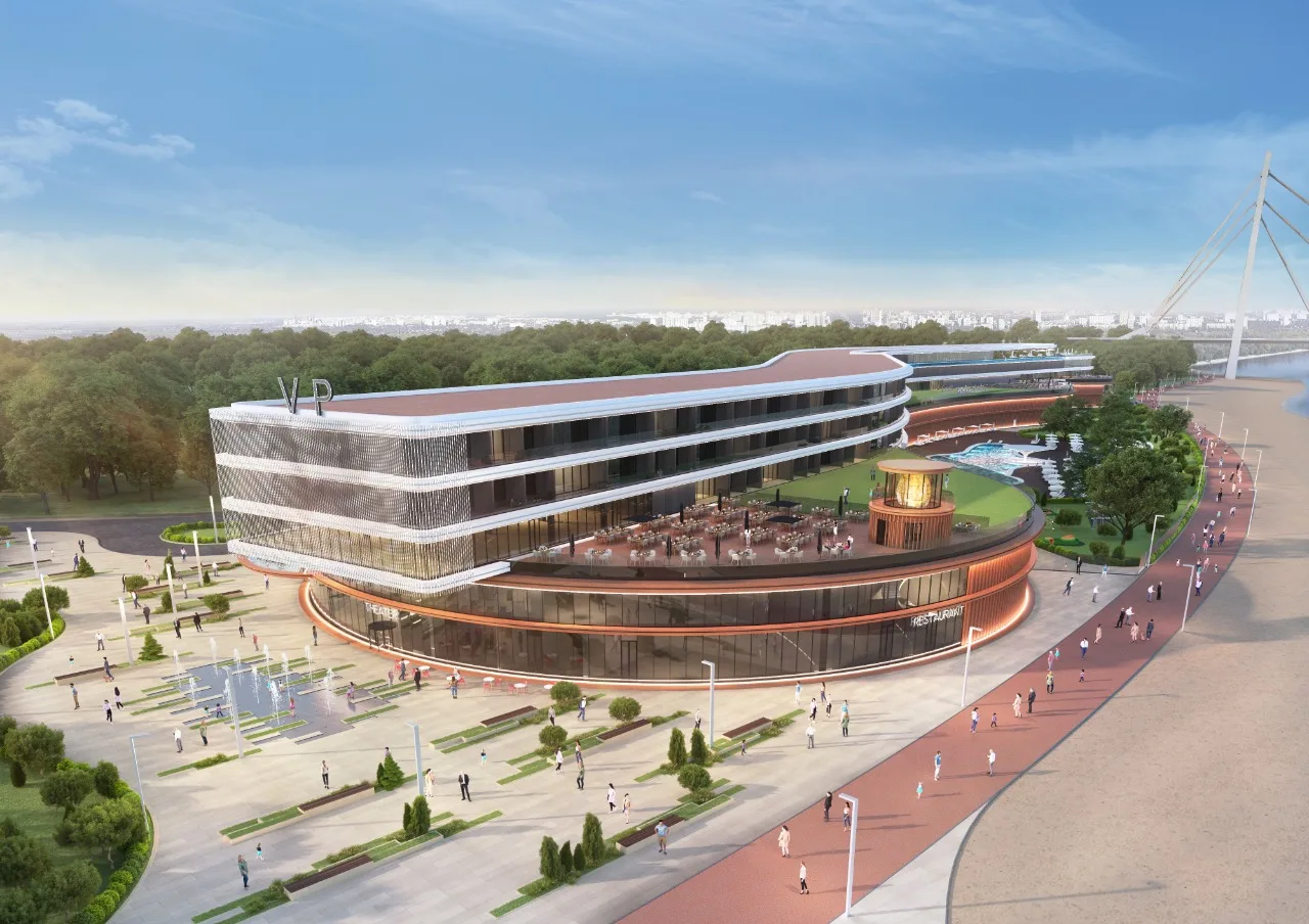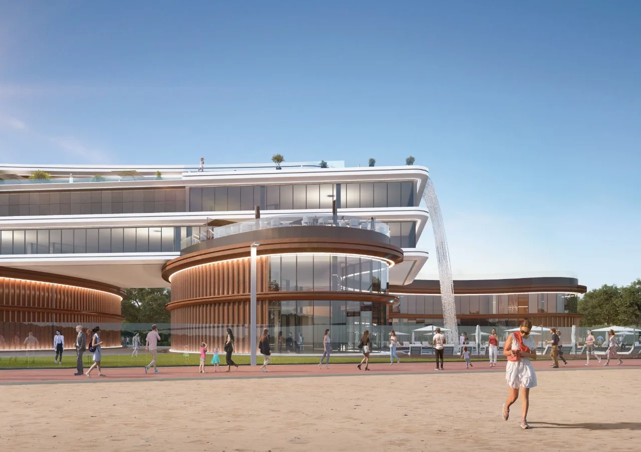Спеціалісти компанії ABH у співробітництві з архітектурною студією AVG, окрім ескізного проєкту, розробили дизайн-концепт фасадів та підготували візуалізації проєкту. Для досягнення мети – реалізації сучасного, технологічного та знакового для України проєкту – ми обрали нестандартну, унікальну для нашої країни архітектуру з футуристичними формами. Зовнішній вигляд майбутнього комплексу стане його візитівкою та одним із «якорів» проєкту, який зможе сам по собі приваблювати додаткові потоки гостей.