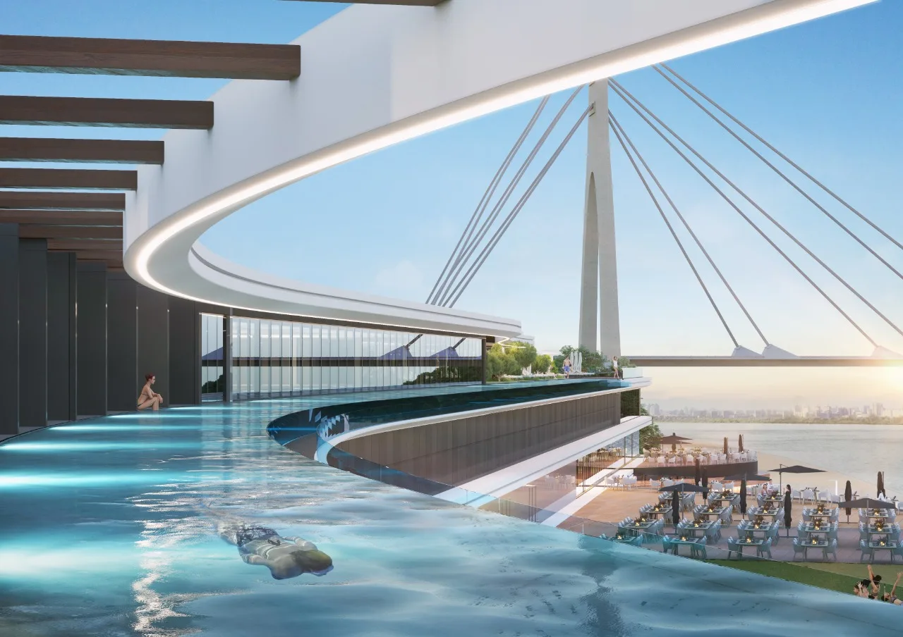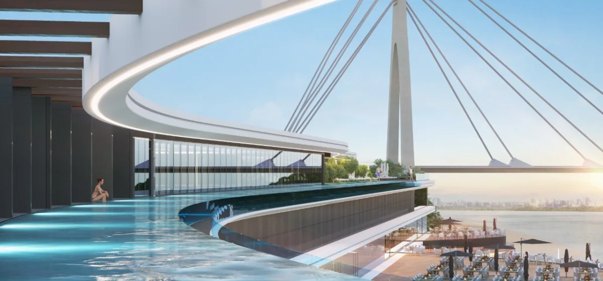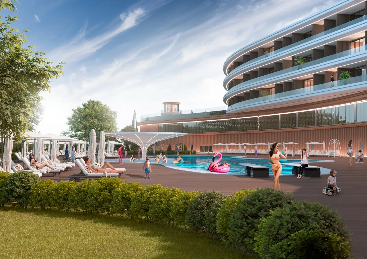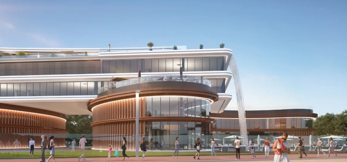 Спеціалісти компанії ABH у співробітництві з архітектурною студією AVG, окрім ескізного проєкту, розробили дизайн-концепт фасадів та підготували візуалізації проєкту. Для досягнення мети – реалізації сучасного, технологічного та знакового для України проєкту – ми обрали нестандартну, унікальну для нашої країни архітектуру з футуристичними формами. Зовнішній вигляд майбутнього комплексу стане його візитівкою та одним із «якорів» проєкту, який зможе сам по собі приваблювати додаткові потоки гостей.