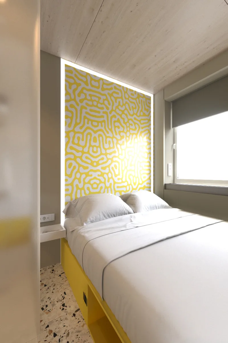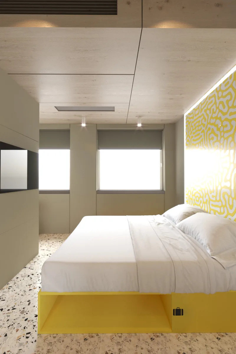 Команда фахівців ArtBuild розробила готельну технологію, супроводила проєктування та підготувала дизайн-концепт для готелю категорії budget на 45 номерів, що розташований на одній з ключових автомагістралей Києва. Проєкт розрахований на короткострокове проживання – 1-2 дні. Його основною цільовою аудиторією будуть відрядники, транзитники та молоді люди.