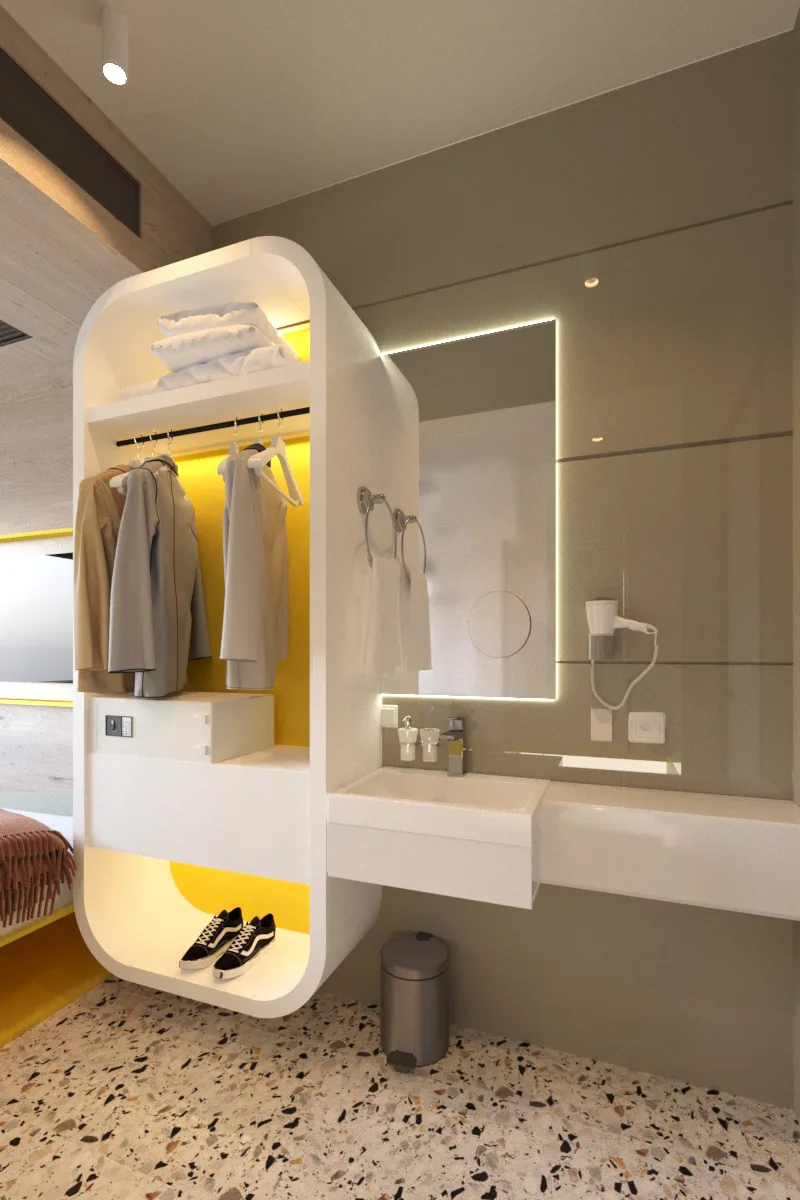 Головною відмінною рисою готелю стане його технологічність та ергономічність. У маленькому просторі кожного номеру буде пропонуватися високий сервіс для гарного відпочинку за доступною ціною. В цілому за форматом і фізичними (архітектурними) властивостями цей готель категорії budget стане унікальним для українського готельного ринку.