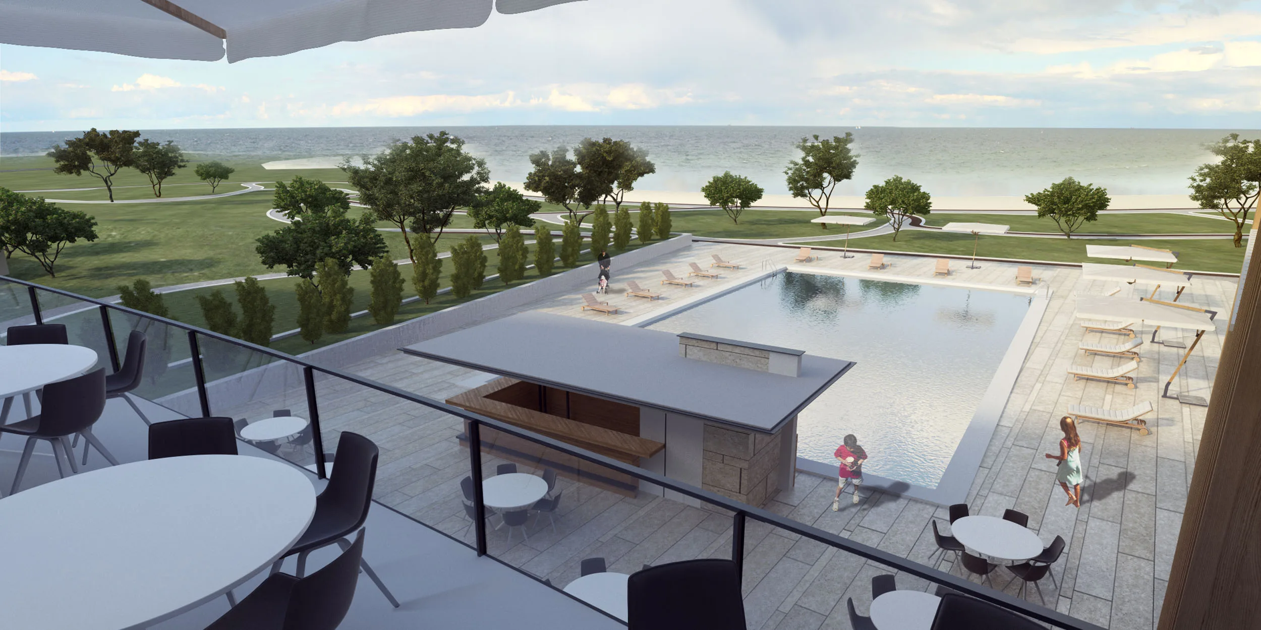 Серед ключових елементів інфраструктури проєкту: критий і відкритий басейни, два ресторани, бари, клуб здоров’я зі своїм SPA-комплексом, паркінги, дитячі та спортивні майданчики, паркова територія для піших і велосипедних прогулянок, послуга регулярного трансферу до пляжу на узбережжі Чорного моря (у сезон) та до історичного центру Одеси (протягом всього року).