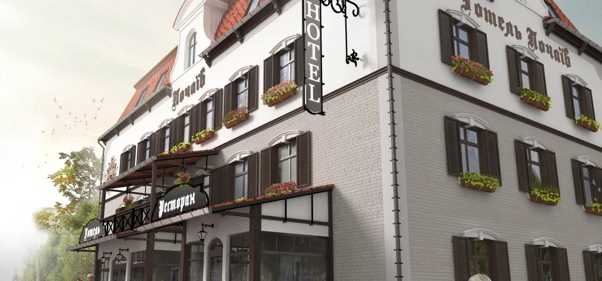 До початку будівництва об’єкт мав вигляд застарілої 2-поверхової будівлі колишнього готелю, у результаті проведеної роботи – це реконструйований та надбудований 4-поверховий готель (верхній поверх – мансарда) класу midscale на 28 номерів.
