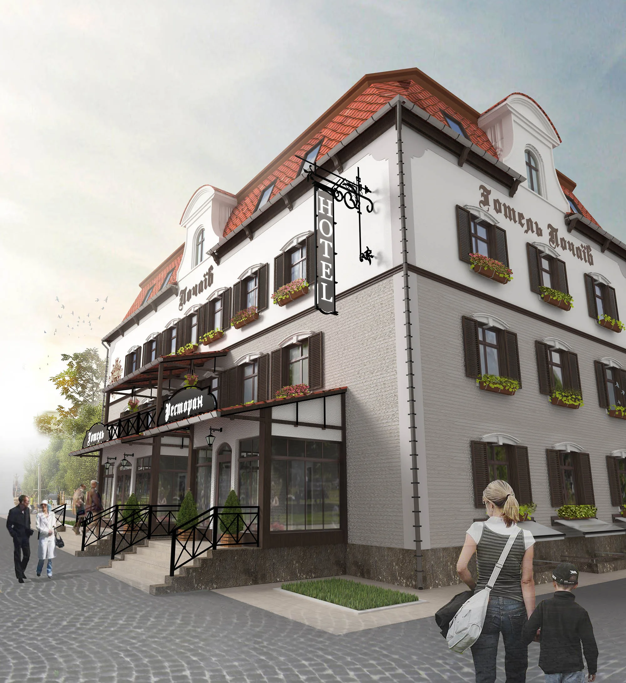 Фахівці компанії ArtBuild взяли безпосередню участь у реалізації проєкту, зокрема, розробили концепцію, готельну технологію та планування поверхів об’єкту, підготували його фінансово-економічну модель, а також повний та детальний дизайн-проєкт. Окрім того, дизайнер компанії ArtBuild запропонував та візуалізував фасади готелю в альпійському стилі.